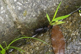 【左】大きなミミズ 【中】カゲロウの仲間 【右】溝にいたコクワガタ