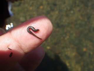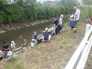 観察場所の川は浅く歩き回るには絶好であったが、魚の隠れる場所がなくなっていて子供では魚をとらえるのは無理な状態になっていた。