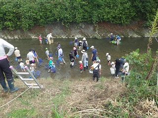 それでも、川底の石をひっくり返しながら網を入れるとカニや時にはウナギがとれるので子供たちは楽しそうに活動していた。