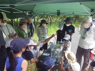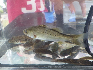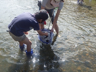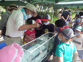 いつものことながら、指導員が頑張って魚やエビなどをとるので、りっぱなミニ水族館が出来上がり、それを見る子どもたちは、本当に嬉しそうだった。