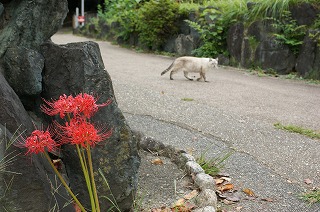 【左】 【中】ヒガンバナ開花、園内の自由ねこ 【右】半田市内 展望