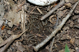 【左】 【中】 【右】キノコ堀り、ハグロケバエの幼虫群出現、