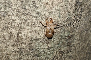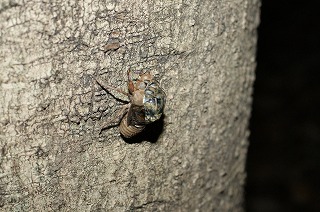 【左】ツクツクボウシ(抜け殻) 【中】ツクツクボウシ(脱皮失敗) 【右】アサギマダラ