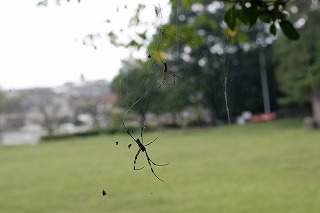 【左】ジョロウグモ 雌雄 【右】宙づりの幼虫 未同定