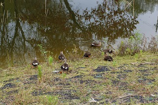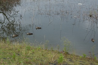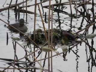 【左】カルガモ 【中】カルガモ 【右】カイツブリ営巣中
