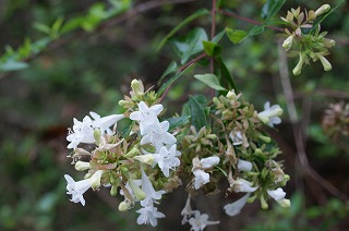 【左】ヤブラン 【中】ナンキンハゼ 紅葉 【右】ハコネウツギ 開花