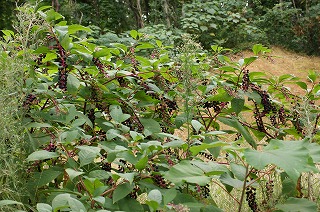 【左】ヒヨドリジョウゴ 結実 【中】カクレミノ 結実 【右】ヨウシュヤマゴボウ 結実