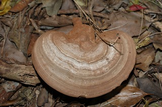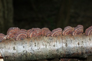 【左】マンネンタケ(レイシ) 【中】 【右】アラゲカワラタケ