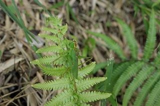 【左】ワラビが沢山生えてました 【中】ニイニイゼミ 【右】手の中にニイニイゼミ
