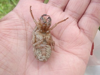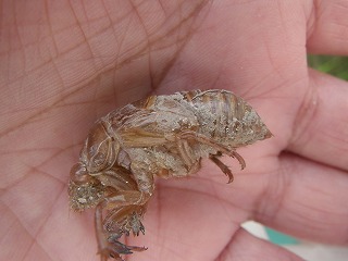 【左】クマゼミの抜け殻 【中】クマゼミの抜け殻 【右】マルカメムシ