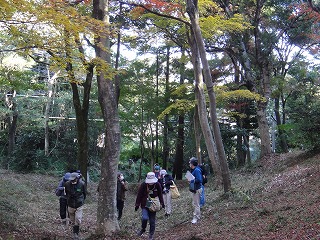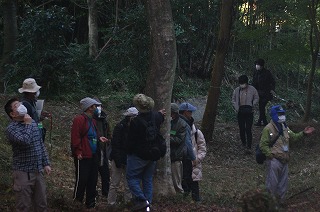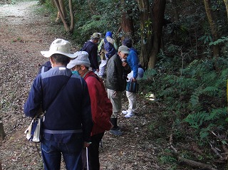【左】開会挨拶 【中】虫探し先行隊 【右】紅葉谷登坂
