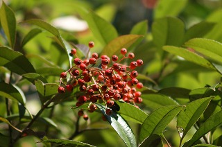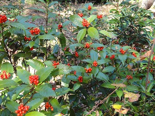 ノムラモミジ、イロハモミジ、オオモミジ、トウネズミモチ、ナンキンハゼノキ、シキザクラ、シイ、フジ、センリョウ、マンリョウ、モチ、カナメモチ、ササクサ、コムラサキシキブ、ミミズバエ、フユノハナワラビ