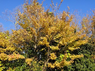 【左】トウネズミモチ 【中】トウネズミモチ 果実 【右】トウカエデ 黄葉