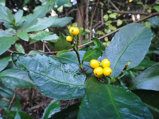 【左】センリョウ 果実 【中】センリョウ 果実 【右】マンリョウ 果実