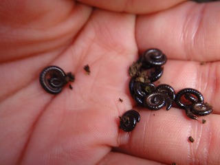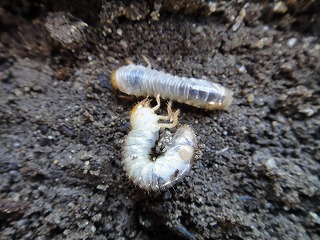 【左】カタツムリ 歯舌食痕 【中】カブトムシ 幼虫 【右】カブトムシ 幼虫