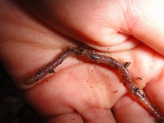 【左】ジムカデ 【中】ミミズの仲間 【右】地中から掘り出したコガネムシ類の幼虫