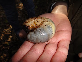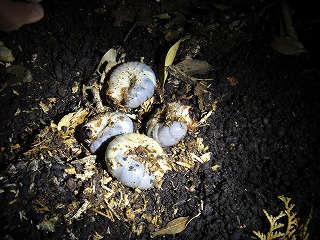 【左】紅葉谷 登坂 【中】カブトムシ幼虫がいた! 【右】伐採木集積場 いつも見つかるカブトムシ幼虫