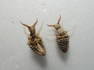 【左】アリジゴク (ウスバカゲロウの幼虫) 【中】同左 【右】同左