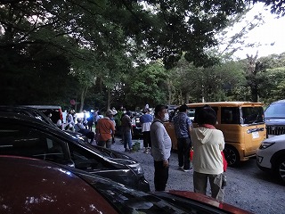 【左】駐車場は満車   【中】危険な生きものへの注意   【右】ナイトハイキング