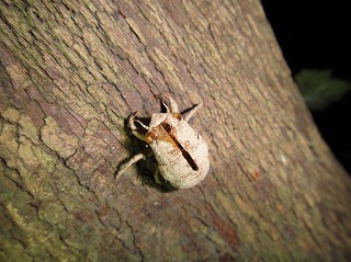 【左】ニイニイゼミ 抜け殻   【中】同左   【右】ムカデの餌食になった羽化クマゼミ