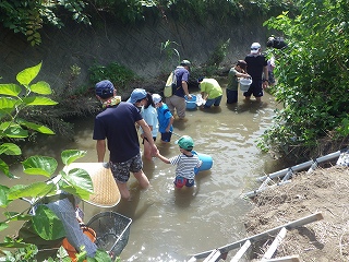 特に小学生の年代のみなさんが大変興味を持って講師の説明に聞き入っている様子が印象的でした。生き物や環境について学習できる良い機会になりましたね。解説後は、特定外来生物についてが駆除し、その他在来種は、参加者のこどもたちと協力して川に放流しました。