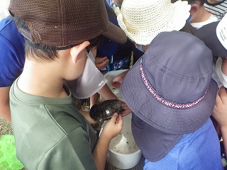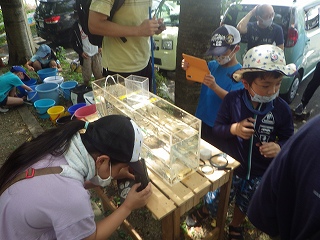 みなさん、暑さも時間が経つのも気にならないくらい夢中になって色々な生き物を採取していました。