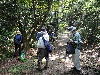 駐車場から入った林からすぐにキノコは見つかった。大小さまざま。毎年見られる「メンバー」もみられた。オオスズメバチにも遭遇し、緊張が走った。林の中は、ほどよくしめっていた。