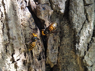 【左】マイマイカブリ   【中】アトボシアオゴミムシダマシ   【右】スズメバチの仲間 オオスズメバチ