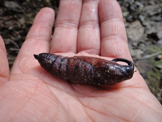 【左】エビガラスズメ(蛹)   【中】エビガラスズメ(蛹)   【右】キセル貝の仲間