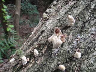 キアシナガイグチ、ハカワラタケ、カワラタケ、アシグロタケ、ホウロクタケ、ヒイロタケ、ウチワタケ、ツヤウチワタケ、ニッケイタケ、コフキサルノコシカケ、クロコブタケ、エリマキツチグリ、ツチグリ、シロツチガキ、チャツムタケ、シロオニタケ、シロオニタケモドキ、オオワライタケ、キイボカサタケ、ヒイロタケ、ニッケイタケ、キツネノエフデ、ヤキフタケ、チャニガイグチ、多孔菌類(老菌)、クジラタケ、クリカワヤシイグチ、キニガイグチ、チャニガイグチ、キクバナイグチ、ウスキモリノカサ、アマタケ、ツルタケ、ケショウハツ、腹菌類(幼菌)、ミドリニガイグチ、カバイロツルタケ、ツルタケケ、カワリハツ、ヌメリコウジタケ、ミヤマザラミノヒトヨタケ、キツネノカラカサ、ニオイコベニタケ、ケショウハツ