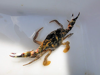 【左】カニさん獲ったよ〜 【右】黄色くて目立つので人気絶大のナベカ