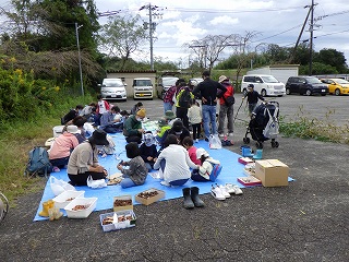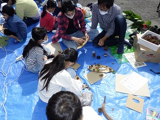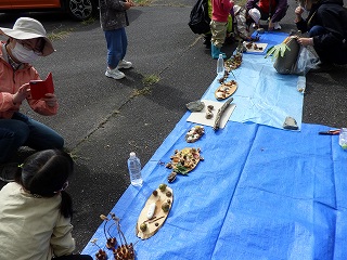 昨年と同じく前日に雨が降ったこともあり、足元が滑りやすい状態でしたが、最初の自然物探しも楽しく行うことができました。
