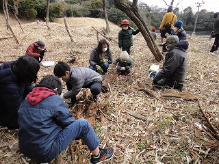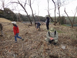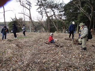【左】松の伐採木の下から開始     【右】雑木林丘の上