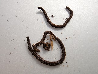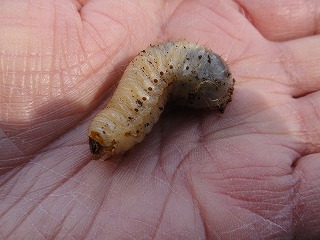 【左】ウバタマコメツキ(幼l虫)  【中】キマワリ(幼虫)   【右】カナブン(幼虫)