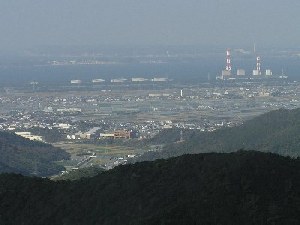 【左】大山から知多方面を見る。 【右】モンキアゲハ。
