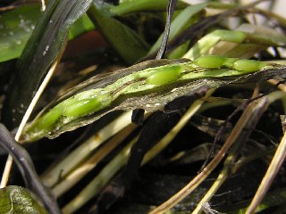 【中】オオフタバムグラ(北アメリカ原産)の発芽の様子を見ています。