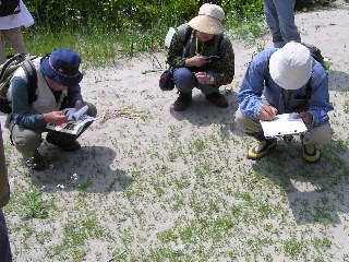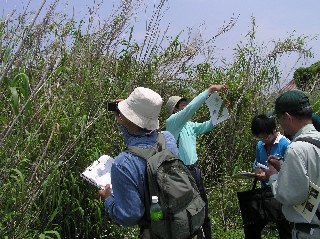 【中】ダンチクの観察をしています。ダンチクは知多半島では少なくなりました