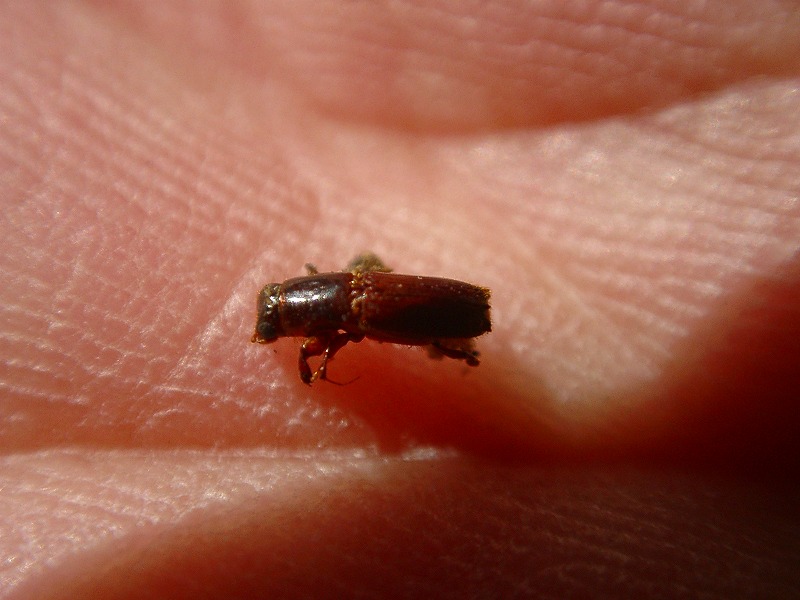 【左】穴の直径は2〜3mm  【右】穴にいた昆虫(これがカシナガ)