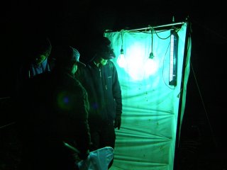 【中】灯火に集まって虫を確認。
