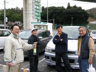 【左】松平のJAコープに集合。ワイン用意、ただしガの誘引用。