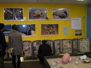 【左】漂着物展の様子 【右】漂着ゴミ等の展示