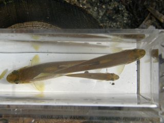 *川の生物では魚のカワムツが活動基地下部の川で捕獲したカワムツと堰堤最上部のカワムツとでは体側線の有無があり、堰堤最上部のカワムツには縦条の側線は見られなかった。堰堤最上部のカワムツは封鎖された環境での生息で近親交配の影響なのか? A型とB型の差では無さそうである・・・? (記・南川)