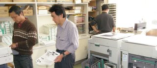 【左】原稿がまとまり、印刷準備です。  【右】手際よく印刷しました。