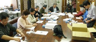 今まで年報作成の様子はWebに掲載していませんでしたが、今年は載せることにしました。年々、年を追うごとに会員の皆さんから観察会記録をこまめに出していただいています。1年のまとめである「年報」は、観察記録の集大成であります。昨年まではすべての行事記録を「年報」に載せました。その関係から完成するのに朝早くから始めて夕方、暗くなるまでかかりました。出来れば全部の行事を印刷できればよろしいですが、今年から「年報」作成担当者の提案で3分の1になるように各市町で選抜していただくようにしました。その結果、ほぼお昼までに完成することが出来ました。年報作成に当たり、一番大変なのは、事前に原稿作成することですが、印刷当日、たくさんの会員の方に集まっていただき、皆さんに手際よく作業を進めていただき完成することが出来ました。観察会の実施⇒観察記録のまとめ(Web原稿)⇒年報作成  最後のまとめまですべて円滑に進みました。