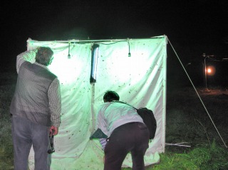 【左】日が落ちた段戸山牧場 【右】蛾の仲間がたくさん集まってきました。