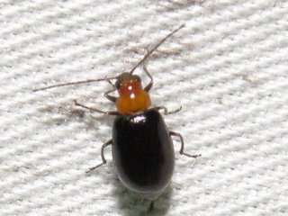 旭高原元気村に続き2回目の牧場灯火観察会を段戸山牧場(標高約700〜900メートル)で行いました。対象は前回同様、糞コガネです。旭高原より100メートルほど標高が高いので山地性の糞コガネが見られることを期待しました。あちこち道草をして、集合場所の伊勢神ドライブインPに集合時刻16:30より10分前に着きました。沖田さんはとっくの昔1時間も前に来たそうで、少し遅れると連絡のあった降幡さんを待ち、1時間遅れの17:30に全員がそろいました。急いで目的地へ走り、何とか暗くなる前に牧場事務所の近くに装置をセットして18:10頃から夕食を食べながら灯火観察を始めました。初めてまもなく目的の糞コガネが2匹やってきました。しかし後が続きません。前回同様ガは次から次にやってきました。小バエやウンカ、ヨコバイ、羽アリもたくさんあつまって来るのにコウチュウ類は極端に少なくサビキコリやナミテントウが来たくらいでした。20:00頃3人でナイトハイクに出かけました。牧場に通じる道沿いにたくさんのクロマドボタルの発光が見られ、クロマドボタルの分布の広さに驚きました。しかし幼虫の大きさがいつも見ているものより細くて小さいのが気になります。灯火場所に戻ってみると糞コガネがいなくなっていて、ガはさらに数を増していました。しばらく観察を続け23:00頃終了しました。22日は5:30頃、目を覚ましました。沖田さんは用事があったようで、すでに帰った後でした。6:00に起床し、降幡さんと2人で駒が原から林道を抜けて段戸裏谷に7:00頃つきました。朝食後、植物やキノコについて降幡さんの説明を聞きながらキララの森や周辺の散策を行い9:30頃今回の観察を終了しました。目的の糞コガネは旭高原で見たのと同じカドマルエンマコガネただ1種でした。(記・平松)
