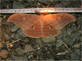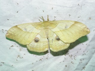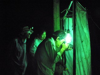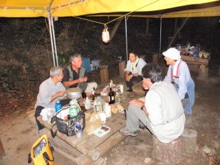 【左】灯火観察セット後の懇談  【右】ヤママユ到来