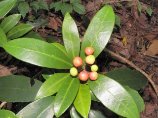 ミヤマシキミ、ヤマボウシ、アオハダ、アカガシ、ツクバネ、コアジサイ、テンナンショウの仲間、ヤクシソウ、ガンクビソウ、ヤブタバコ、アキチョウジ