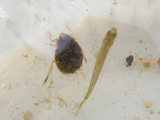 アブラハヤ、ハゼの仲間の卵?、ヌマエビ、ヒゲナガカワトビケラの仲間、ナベブタムシ、モンキマメゲンゴロウ、ヒメカメノコテントウ?、マツモムシ、ヒメガムシ?