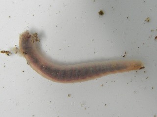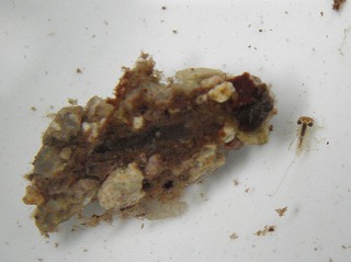 【左】トビケラの巣 【中】ヒダサンショウウオ? 【右】ヒダサンショウウオ?